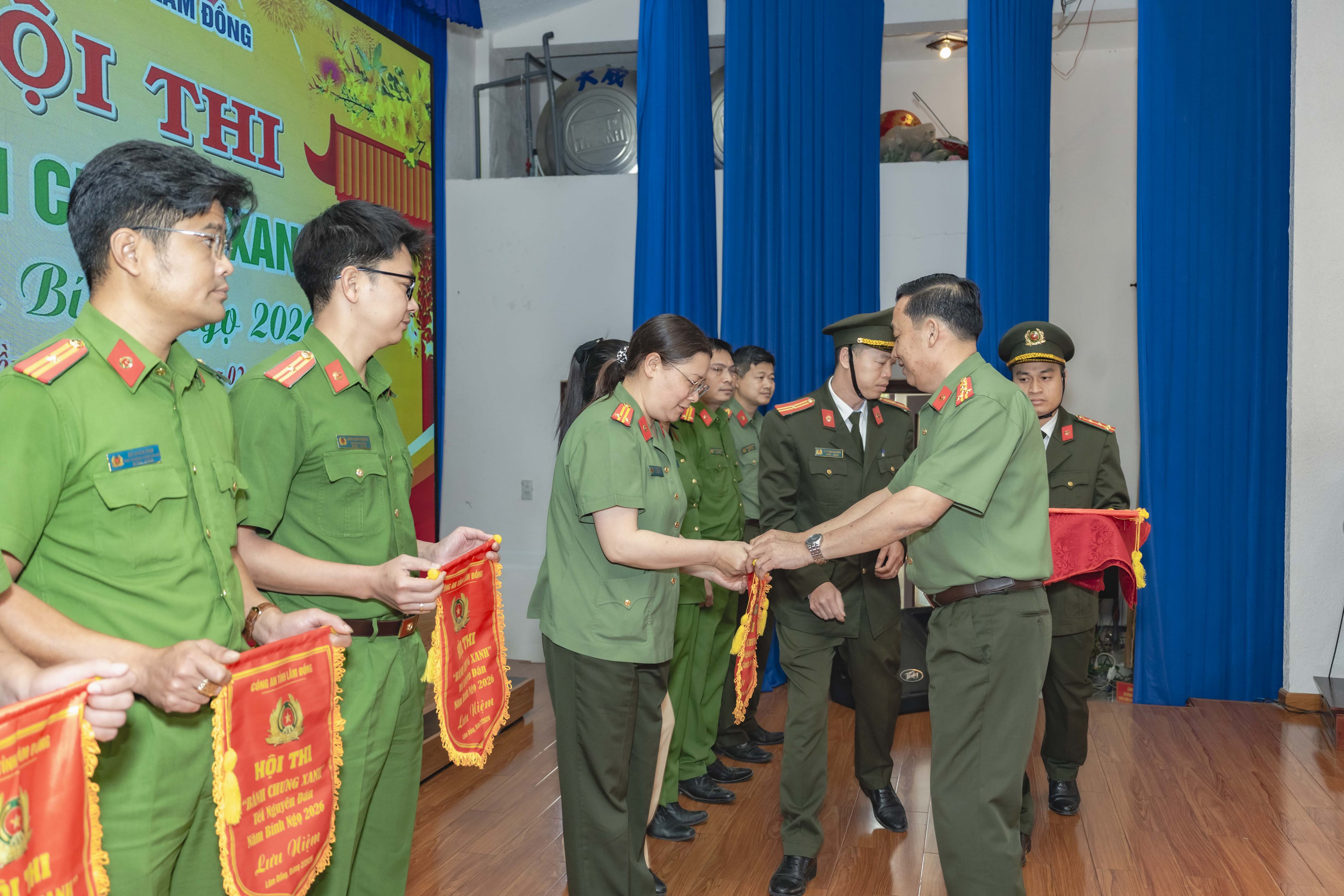 Lãnh đạo Công an tỉnh trao cờ lưu niệm cho các đội thi