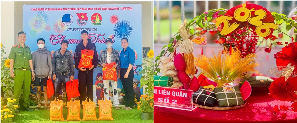 Bên cạnh phần thi gói bánh, Chi đoàn Công an xã cùng Đoàn xã Tuyên Quang đã trao tặng 01 phần quà Tết cho Mẹ Việt Nam Anh hùng tại phường Bình Thuận; 05 gia đình chính sách và 04 thanh niên yếu thế (đã từng có tiền án, tiền sự, hoàn cảnh khó khăn) trên địa bàn xã Tuyên Quang. Những phần quà tuy không lớn về vật chất nhưng thể hiện sự quan tâm, sẻ chia, động viên các gia đình và thanh niên vươn lên trong cuộc sống.