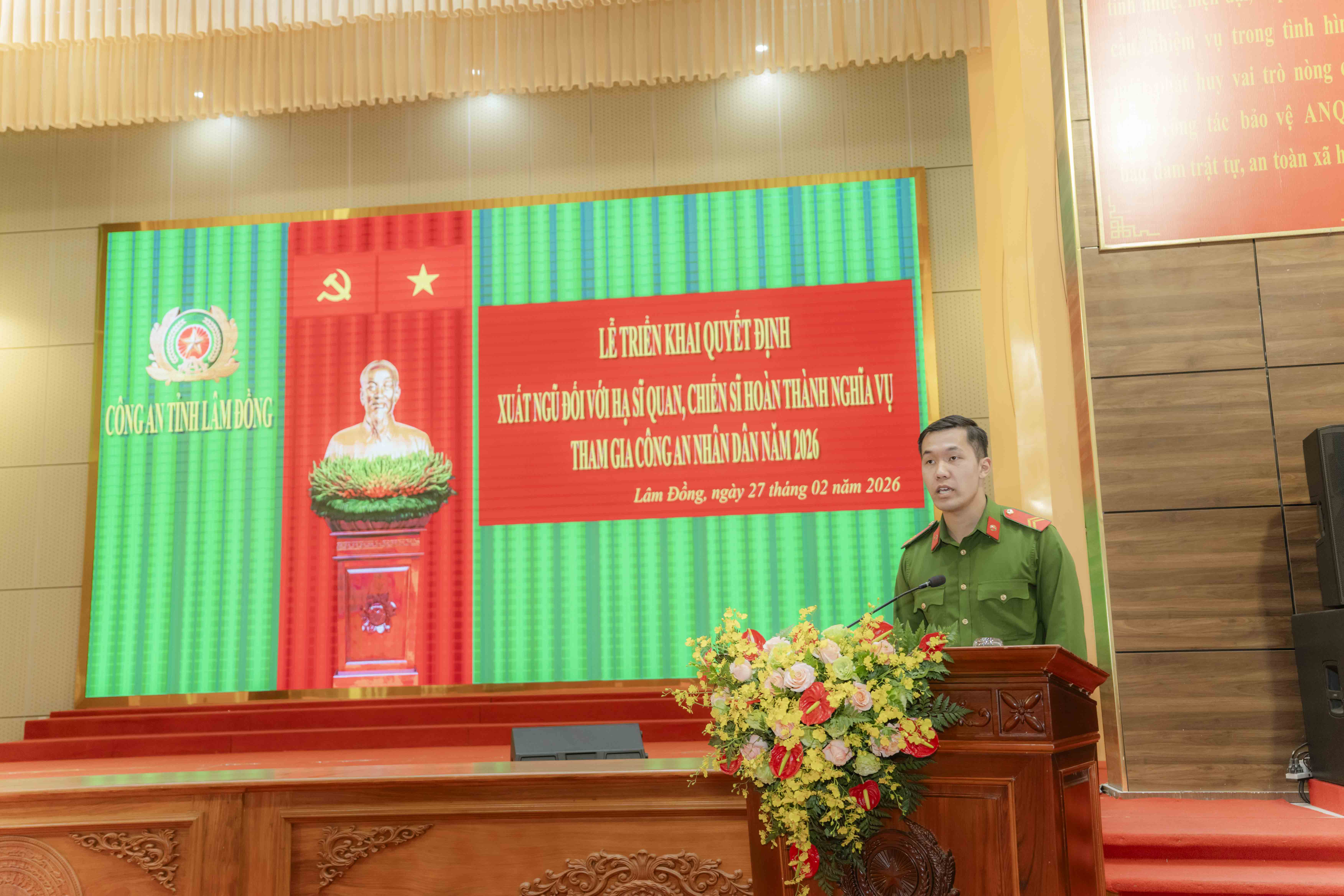 Trong buổi lễ vinh danh, những lời chia sẻ mộc mạc mà thấm thía của Đại tá Trần Văn Mười, Phó Giám đốc Công an tỉnh, đã chạm đến trái tim của những người lính trẻ.