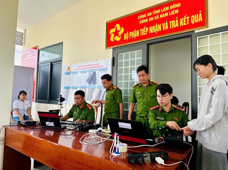 Xác định đối tượng chính trong giai đoạn đầu là học sinh đang theo học tại các trường THCS, Công an xã Hàm Liêm đã chủ động xây dựng kế hoạch chi tiết, thông báo kịp thời đến nhà trường và phụ huynh về thời gian, địa điểm, hồ sơ, thủ tục cần thiết. Tổ Cảnh sát khu vực trực tiếp mang thiết bị đến tận các điểm trường để thực hiện trọn gói quy trình cấp căn cước cho học sinh: từ tiếp nhận hồ sơ, kiểm tra giấy tờ, thu nhận vân tay, chụp ảnh đến đối chiếu thông tin dân cư.