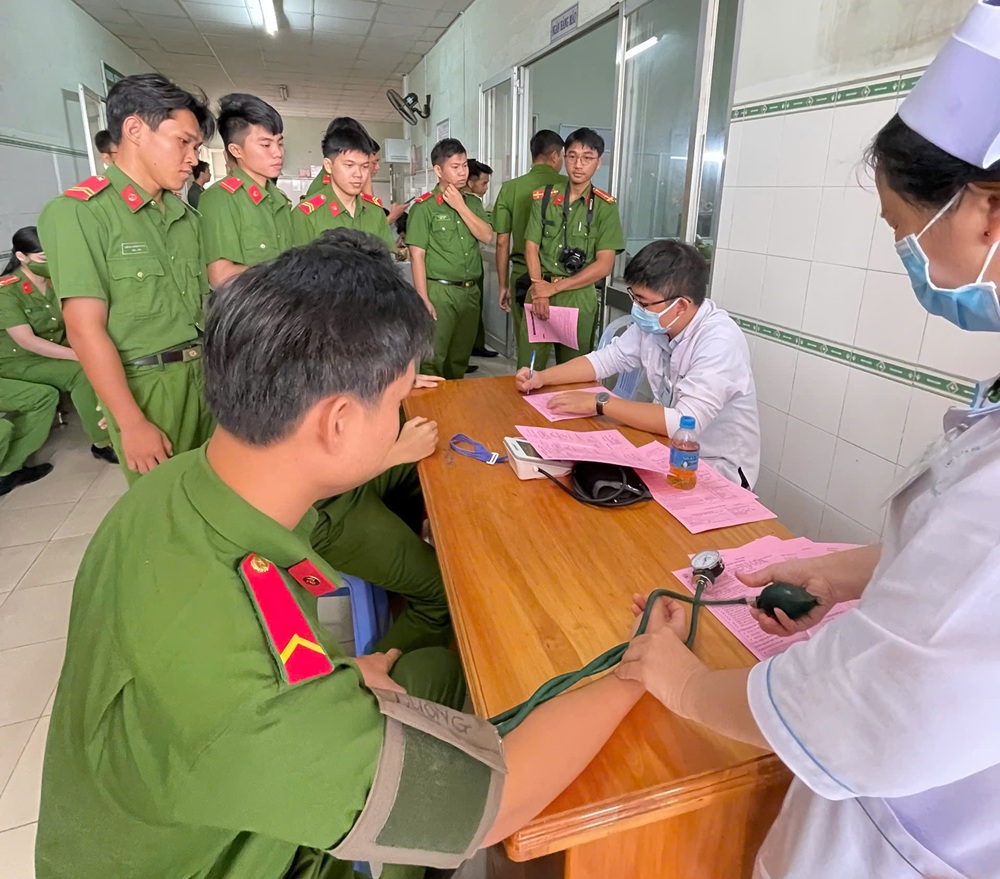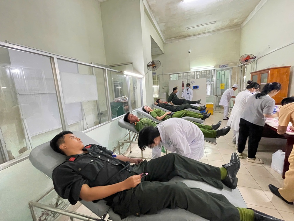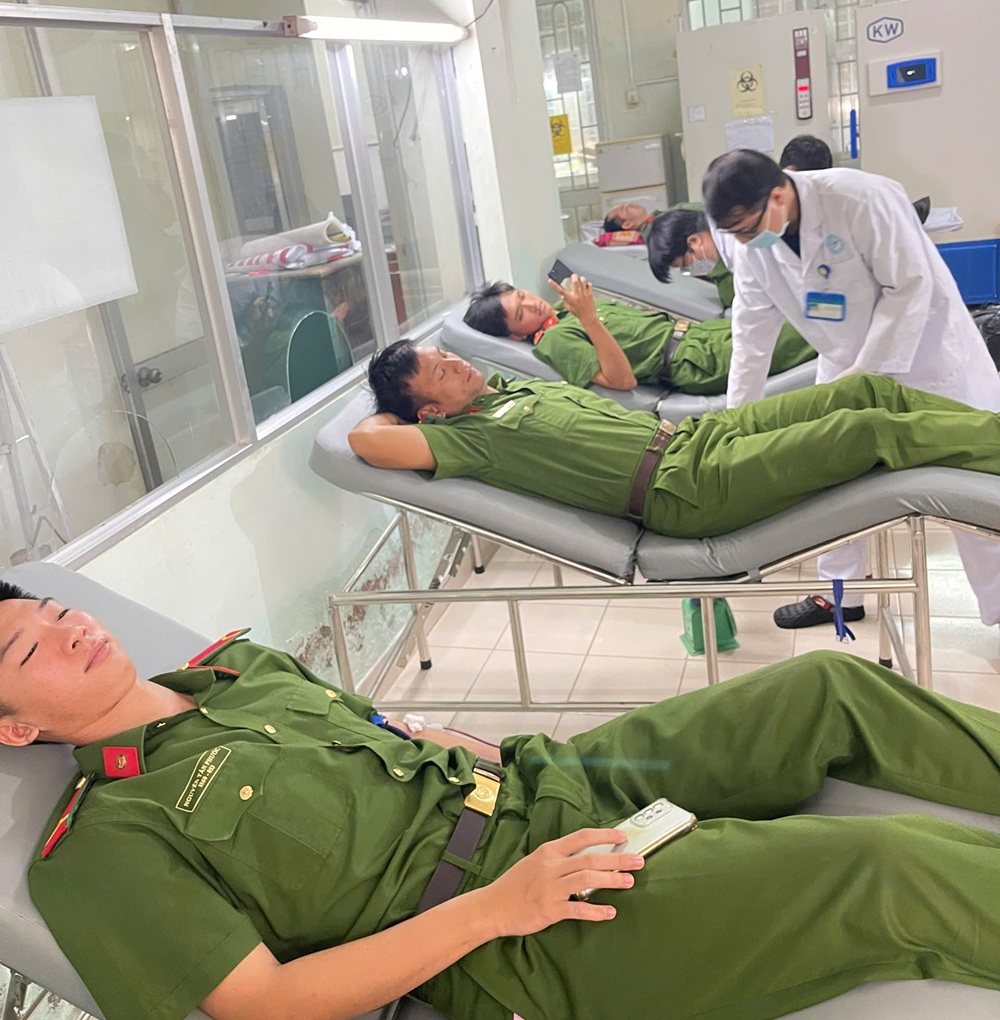 Cán bộ chiến sĩ Công an tỉnh Lâm Đồng tham gia hiến máu tại Bệnh viên Đa khoa Bình Thuận