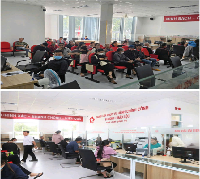 Trung tâm phục vụ hành chính công của phường 1 Bảo Lộc được bố trí khang trang để tiếp dân giải quyết thủ tục hành chính