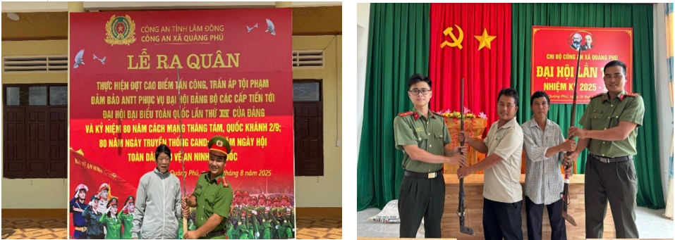 Nhờ làm tốt công tác vận động, ý thức chấp hành pháp luật của người dân được nâng cao rõ rệt. Đặc biệt, ngay sau đợt ra quân cao điểm tấn công trấn áp tội phạm, đã có 03 người dân tự nguyện giao nộp 03 khẩu súng kíp. Công an xã đã tiếp nhận, biểu dương và kêu gọi nhân dân tiếp tục giao nộp vũ khí, vật liệu nổ, công cụ hỗ trợ và pháo; tích cực cung cấp thông tin, tố giác tội phạm.
