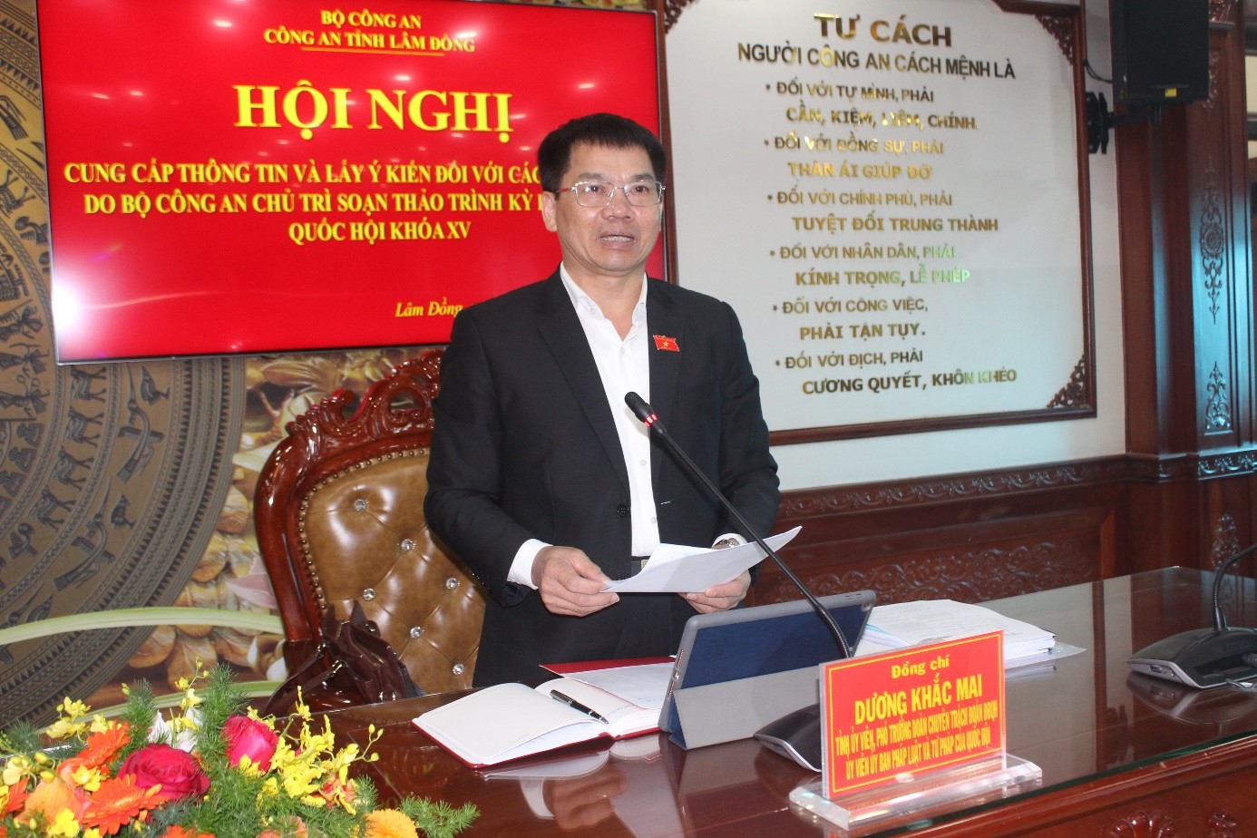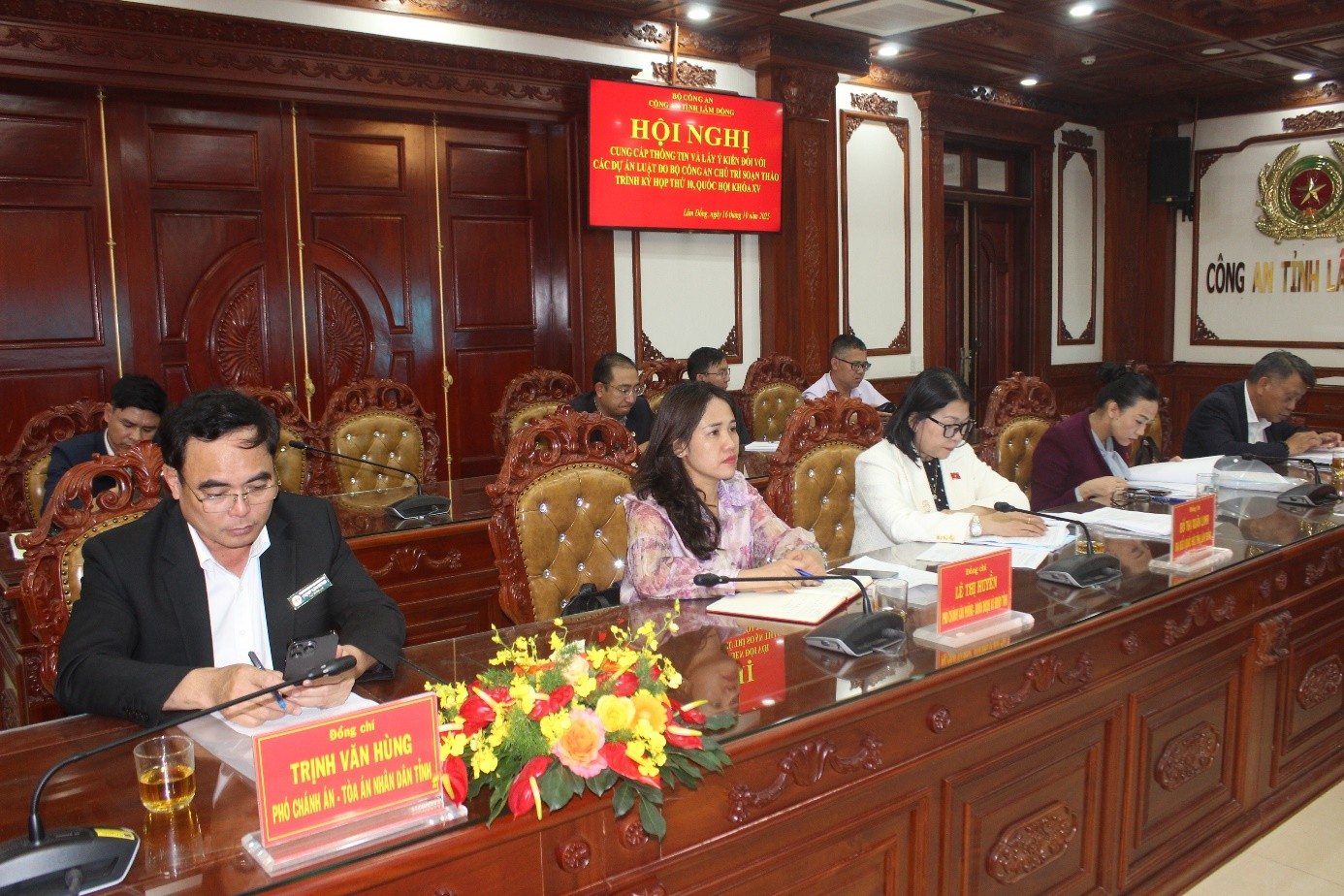 Dự Hội nghị có đồng chí: Dương Khắc Mai, Tỉnh Ủy viên, Phó Trưởng đoàn chuyên trách Đoàn đại biểu Quốc hội tỉnh Lâm Đồng, Ủy viên Ủy ban pháp luật và tư pháp của Quốc hội; Mai Thị Xuân Trung, Tỉnh Ủy viên, Phó Chủ tịch HĐND tỉnh, Trưởng Ban pháp chế HĐND tỉnh; Đại tá Trần Văn Mười – Tỉnh Ủy viên, Phó Giám đốc Công an tỉnh; lãnh đạo một số sở, ban ngành của tỉnh; đại diện các phòng nghiệp vụ Công an tỉnh.