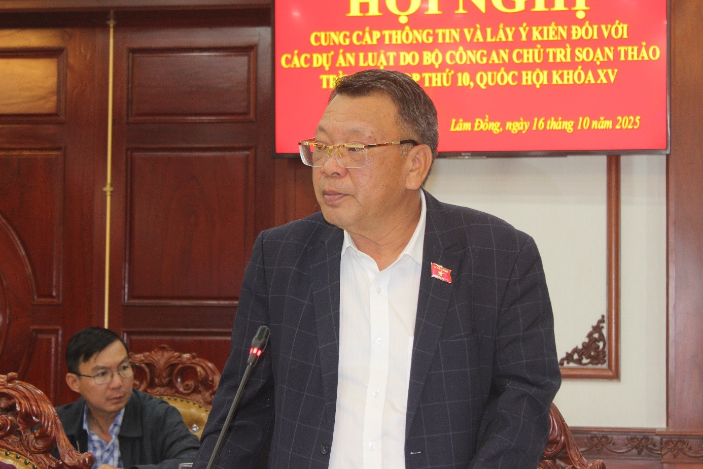 Đồng chí đánh giá cao những ý kiến đống góp của đại biểu đối với các dự thảo luật. Hội nghị được tổ chức khẳng định vai trò cầu nối hiệu quả giữa Đoàn đại biểu Quốc hội tỉnh, Công an tỉnh và các cơ quan, đơn vị, địa phương trong công tác xây dựng pháp luật. Các ý kiến đóng góp, phát biểu đã thể hiện tinh thần trách nhiệm cao, sự nghiên cứu nghiêm túc, tâm huyết và có tính thực tiễn sâu sắc. Những ý kiến tâm huyết, sâu sắc của các đại biểu tại hội nghị là cơ sở thực tiễn quan trọng để Đoàn đại biểu Quốc hội tỉnh nghiên cứu, xem xét, lựa chọn, tham gia, phản ánh thực tiễn đến với Quốc hội, Bộ Công an.