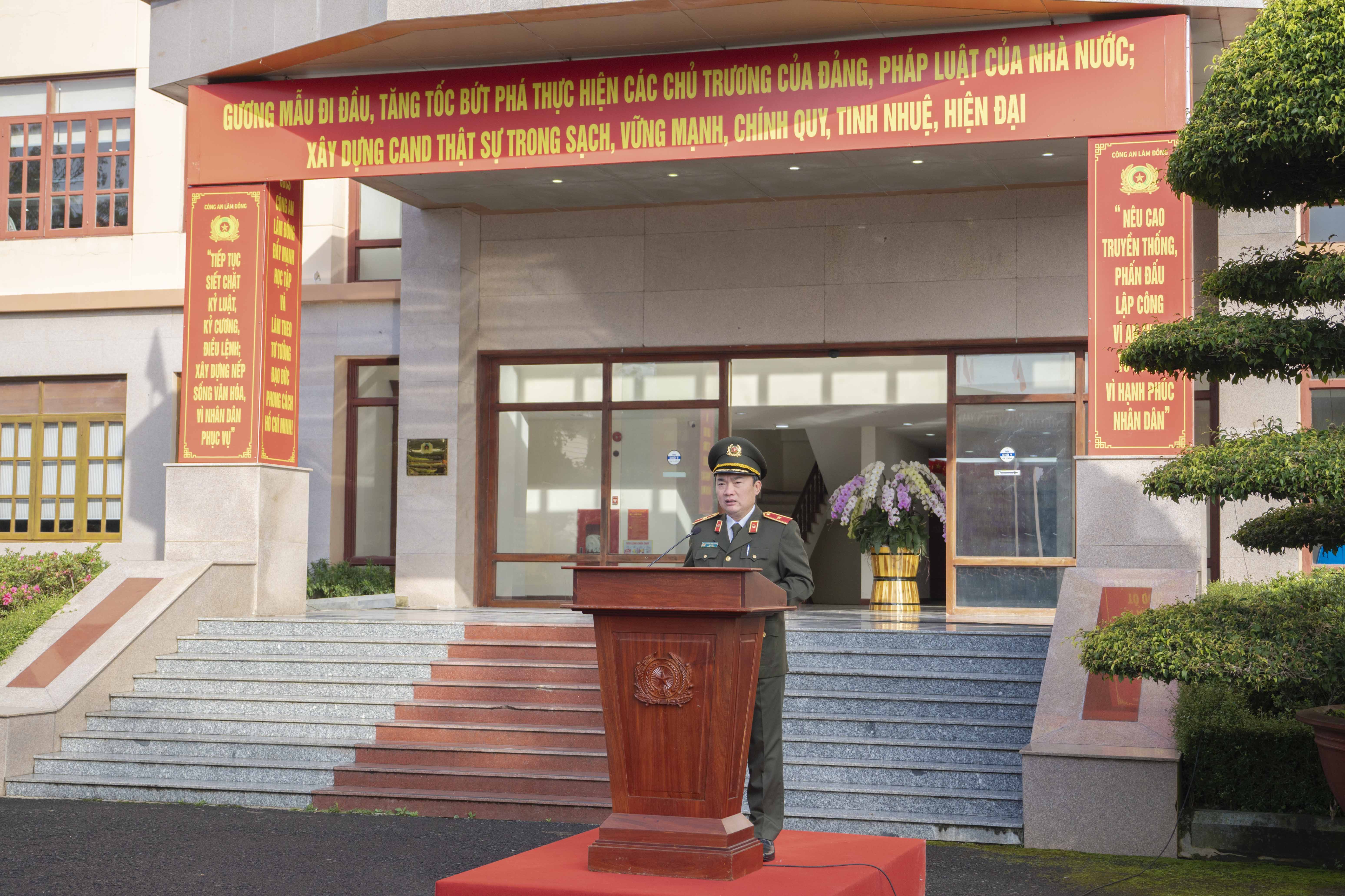 Phát biểu chỉ đạo tại buổi lễ, Thiếu tướng Trương Minh Đương, Ủy viên Ban Thường vụ Tỉnh ủy, Bí thư Đảng ủy, Giám đốc Công an tỉnh Lâm Đồng, biểu dương tinh thần trách nhiệm, sự nỗ lực và kết quả nổi bật của cán bộ, chiến sĩ toàn lực lượng trong tháng 10. Đồng chí nhấn mạnh, tháng 11 là giai đoạn cao điểm, nước rút để Công an tỉnh hoàn thành các chỉ tiêu công tác được Bộ Công an giao, góp phần vào phong trào thi đua “Vì an ninh Tổ quốc” năm 2025. Đồng chí Giám đốc yêu cầu Công an các đơn vị, địa phương tiếp tục siết chặt kỷ luật, kỷ cương, phát huy tinh thần chủ động, sáng tạo, tập trung lực lượng, phương tiện cho các nhiệm vụ trọng tâm, nhất là công tác phòng ngừa, đấu tranh với tội phạm hình sự, ma túy, tội phạm công nghệ cao và vi phạm pháp luật về môi trường. Cùng với đó, cần tăng cường quản lý địa bàn, nắm chắc tình hình, giải quyết kịp thời các vụ việc ngay từ cơ sở, không để phát sinh điểm nóng, phức tạp về an ninh trật tự./.