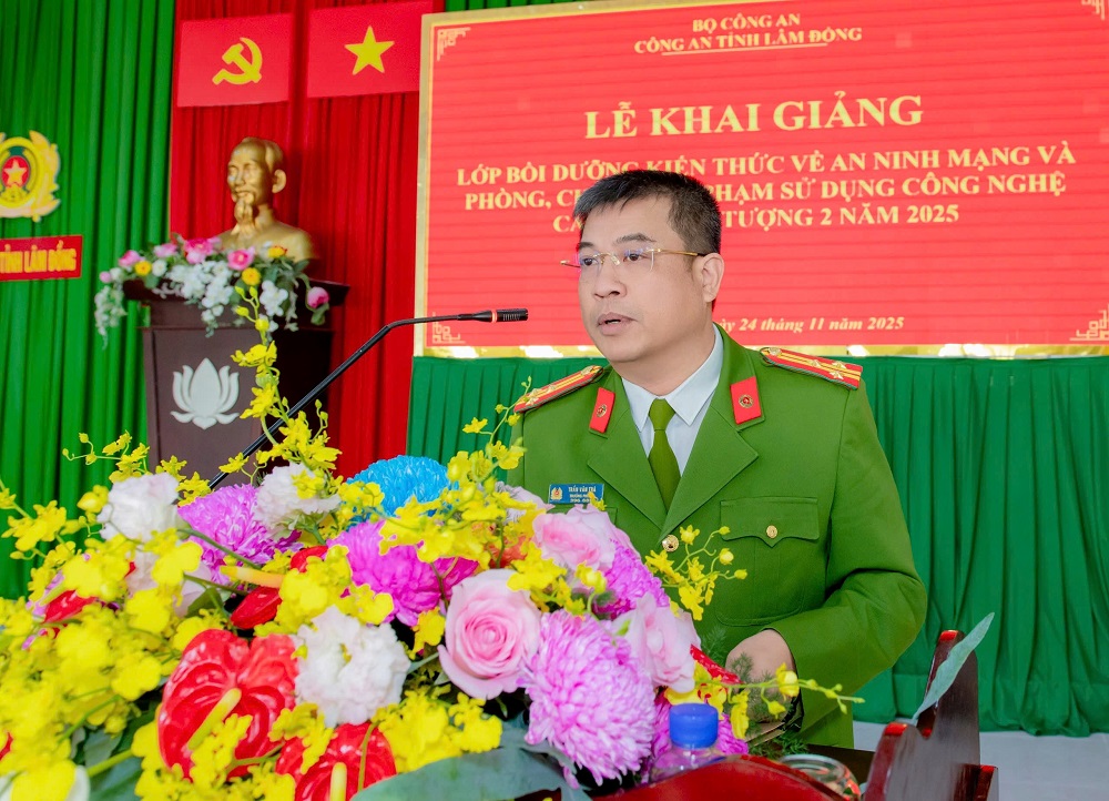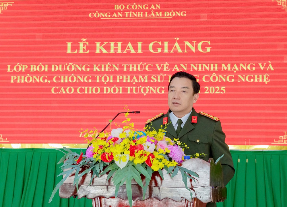Phát biểu tại buổi lễ, Đại tá Trần Văn Mười nhấn mạnh: trong bối cảnh chuyển đổi số diễn ra sâu rộng, việc bảo đảm an ninh mạng, giữ gìn bí mật nhà nước và bảo vệ an toàn thông tin đang trở thành yêu cầu cấp thiết. Đồng chí đề nghị học viên nghiêm túc thực hiện điều lệnh nội vụ, tuân thủ quy định lớp học, đồng thời tích cực trao đổi, chia sẻ các tình huống thực tế nhằm gắn kết lý thuyết với thực tiễn công tác tại đơn vị. Đại tá cũng đặt mục tiêu đến năm 2026, 100% lãnh đạo cấp phòng trong Công an tỉnh sẽ được bồi dưỡng đầy đủ kiến thức chuyên sâu về lĩnh vực an ninh mạng và phòng, chống tội phạm công nghệ cao.