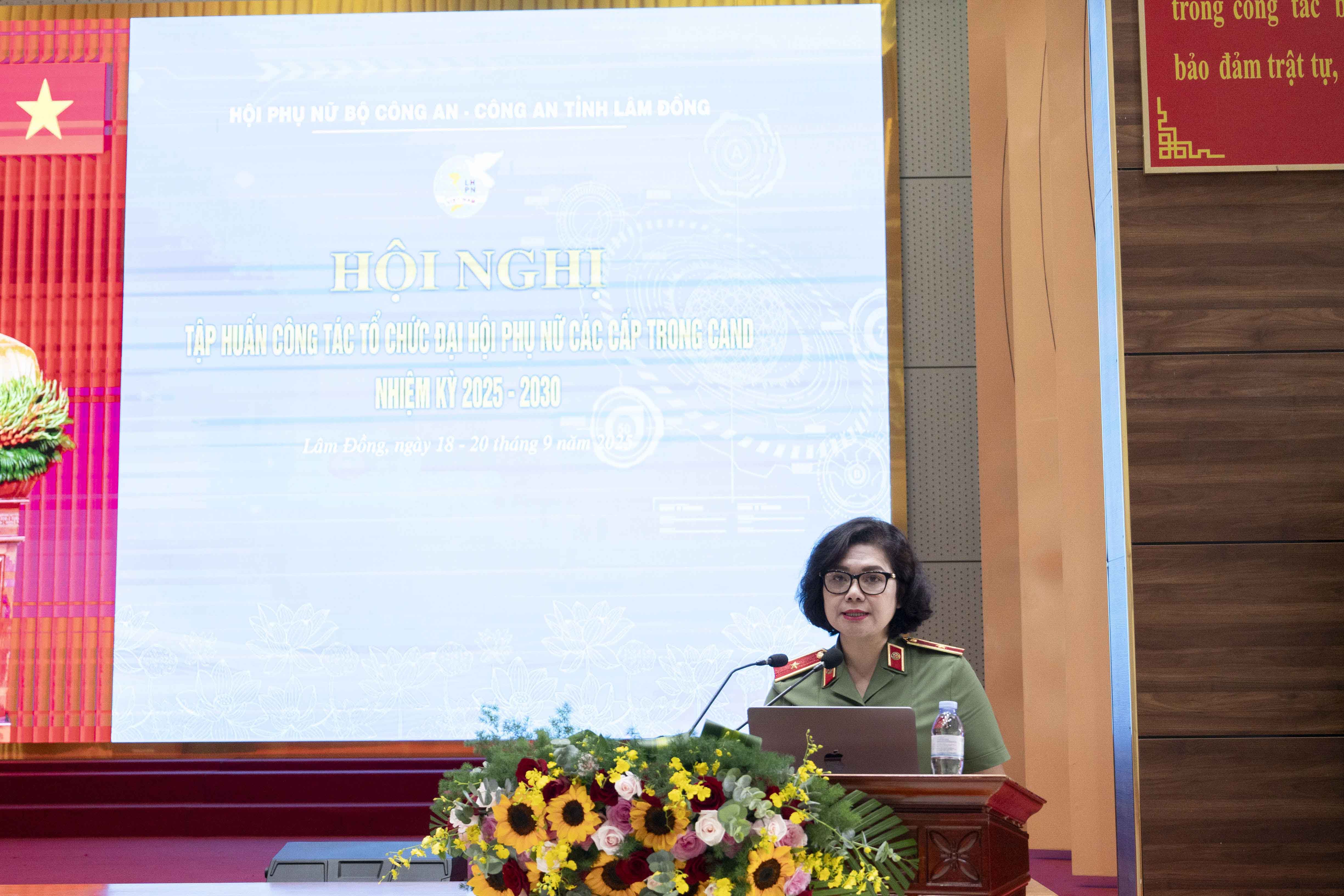 Phát biểu chi đạo, Thiếu tướng Ngô Hoài Thu nhấn mạnh: Những năm qua, công tác phụ nữ trong CAND đã đạt nhiều kết quả quan trọng, góp phần xây dựng lực lượng CAND cách mạng, chính quy, tinh nhuệ, hiện đại. Các cấp Hội phụ nữ trong CAND đã thể hiện rõ vai trò nòng cốt trong tổ chức phong trào thi đua, chăm lo đời sống, bảo vệ quyền và lợi ích chính đáng của phụ nữ, đồng thời tích cực tham gia xây dựng Đảng, xây dựng lực lượng trong sạch, vững mạnh. Đồng chí đề nghị các đại biểu nêu cao tinh thần trách nhiệm, nghiên cứu, thảo luận sâu sắc, nắm vững quy định, hướng dẫn để triển khai hiệu quả công tác chuẩn bị Đại hội phụ nữ các cấp trong CAND, tiến tới Đại hội đại biểu phụ nữ toàn quốc lần thứ XIV, nhiệm kỳ 2026 – 2031.