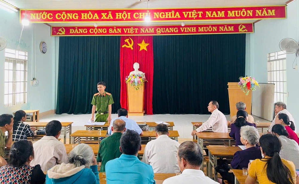 Công an Phường 2 Bảo Lộc tuyên truyền cho cán bộ thôn, tổ dân phố và lực lượng tham gia bảo vệ ANTT ở cơ sở nắm quy định về tội "Sử dụng trái phép chất ma tuý"