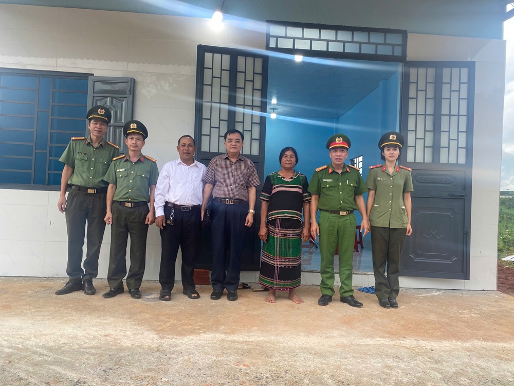 Đồng chí Phó Giám đốc thăm hỏi, động viên và chúc mừng hộ gia đình bà Thị Dyrắ, bon Bu Prăng 1 vừa nhận nhà mới