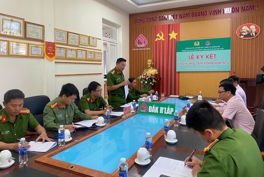 Phát biểu tại buổi lễ, Chỉ huy Công an các xã nhấn mạnh: An toàn của cán bộ ngân hàng và tài sản của nhân dân là ưu tiên số một. Việc ký kết kế hoạch phối hợp này sẽ tạo cơ sở pháp lý vững chắc để lực lượng Công an các xã triển khai các biện pháp bảo đảm bảo an ninh trật tự nói chung, các giao dịch của Phòng Giao NHCSXH Đắk R’Lấp nói riêng.