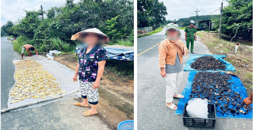 Người dân phơi lâm sản lấn chiếm lòng lề đường