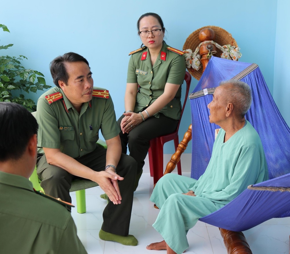 Cán bộ chiến sỹ Phòng An ninh kinh tế thăm hỏi mẹ Việt Nam anh hùng Lương Thị Con và thắm hương tri ân các liệt sỹ