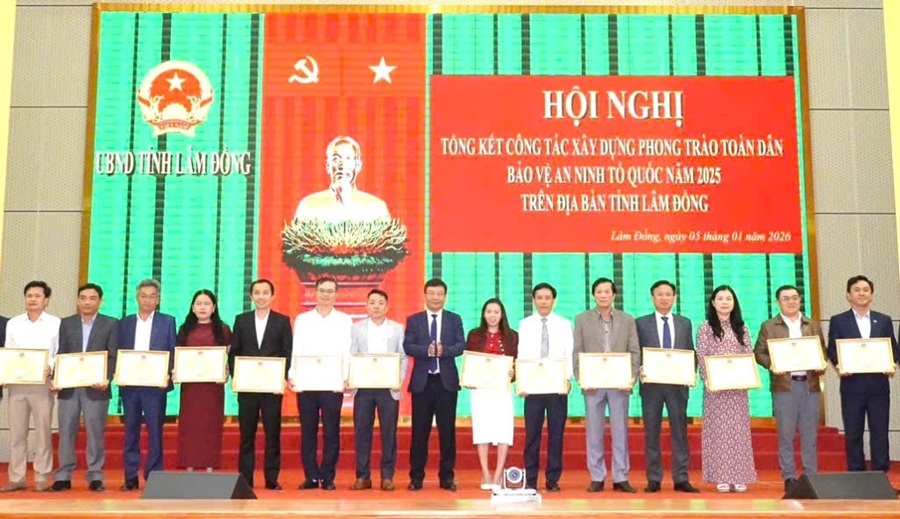 Lãnh đạo UBND tỉnh trao tặng bằng khen cho các tập thể, trong đó có xã Đắk Song về thành tích xuất sắc trong phong trào toàn dân bảo vệ ANTQ năm 2025