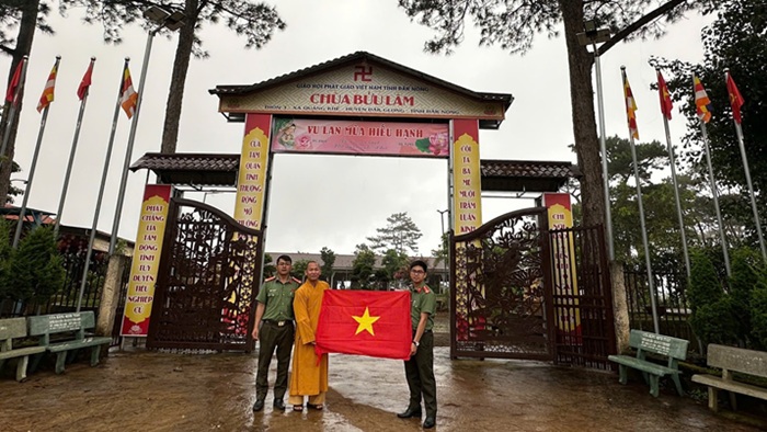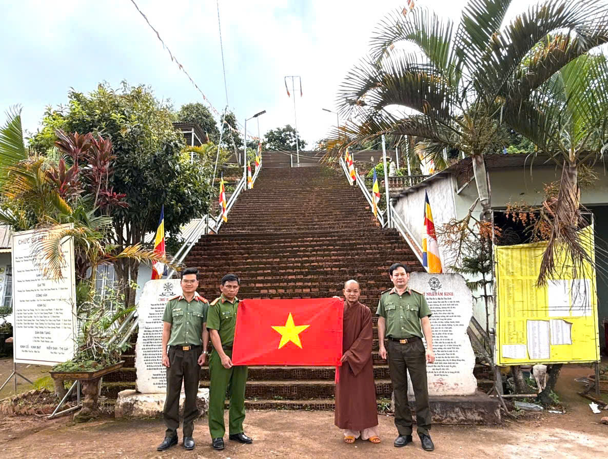 Tại xã Đắk Sắk, Công an xã đã tham mưu chính quyền thành lập Đoàn công tác đến thăm, gặp gỡ các cơ sở tôn giáo trên địa bàn, vận động treo cờ Tổ quốc nhân dịp Quốc khánh. Đặc biệt, tại Giáo xứ Xuân Lộc với khoảng 7.600 tín đồ, lãnh đạo Công an xã đã trực tiếp trao tặng cờ Tổ quốc cho Linh mục Nguyễn Đức Tuyên – Quản xứ, qua đó tuyên truyền, vận động bà con giáo dân treo cờ tại các Giáo họ và từng hộ gia đình. Nhờ sự đồng thuận cao, không khí chào mừng ngày lễ lớn lan tỏa mạnh mẽ, tạo hiệu ứng tích cực trong cộng đồng.