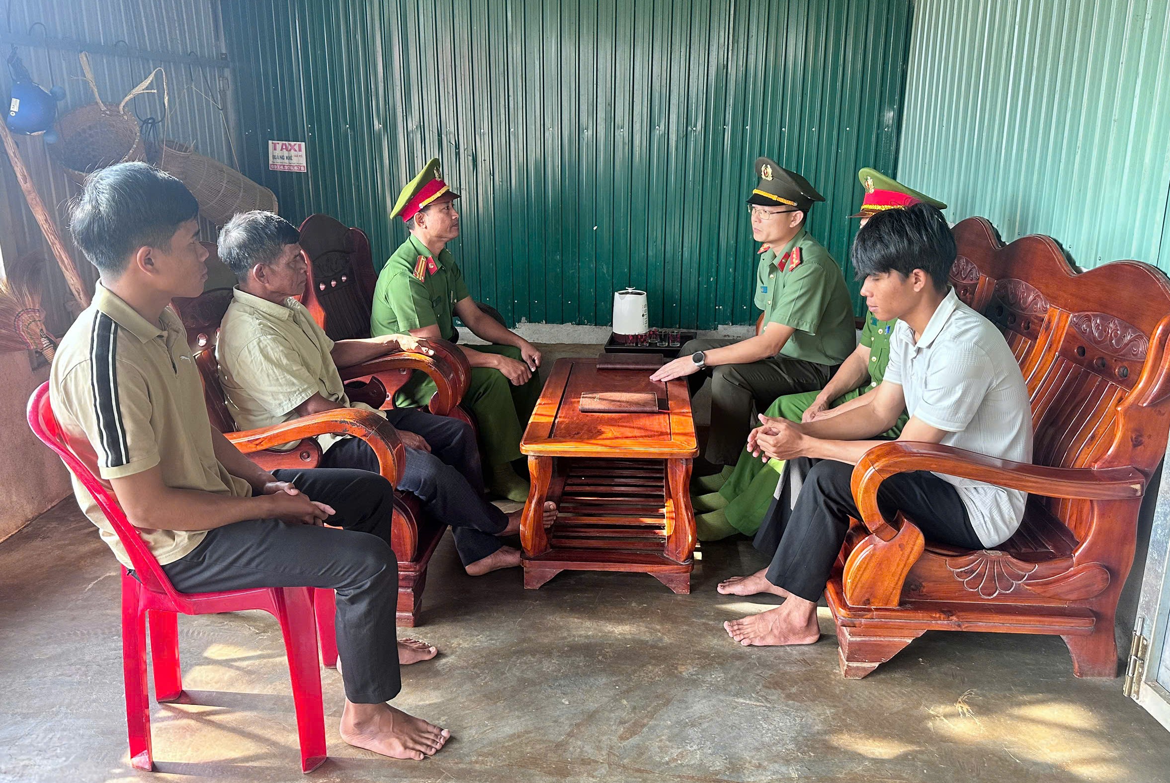 Công an xã Quảng Khê gặp gỡ gia đình hai anh em K’Đại và K’Đoàn