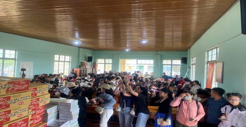 Đoàn từ thiện phát quà cho bà con và học sinh thôn Ma Bó – xã Tà Năng