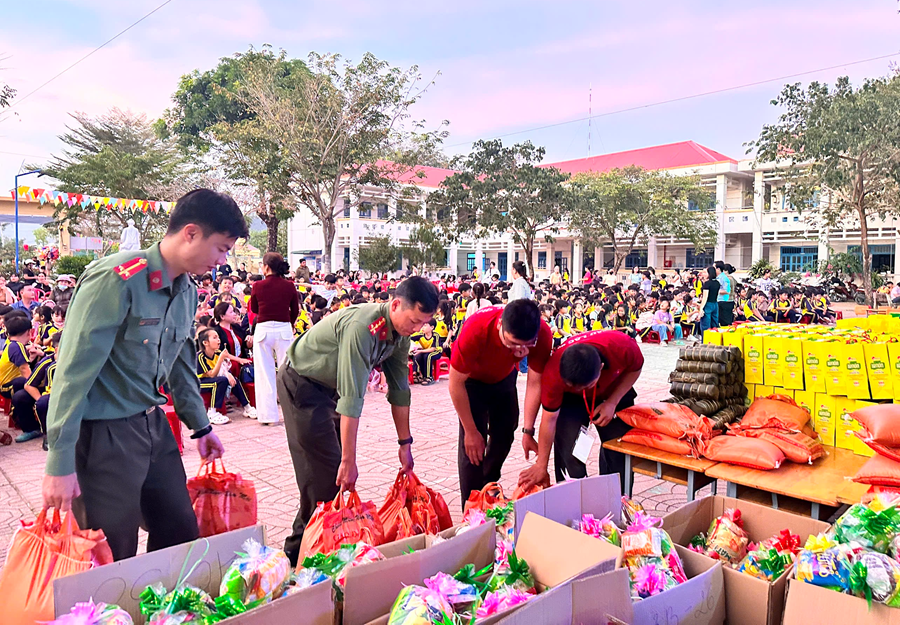 Tặng quà cho các học sinh tại Trường Tiểu học Chu Văn An, xã Nam Thành