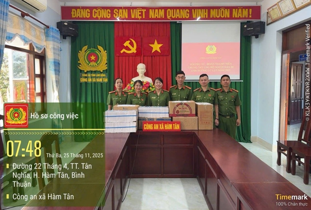 Sáng 25/11/2025, Chi đoàn Thanh niên phối hợp Chi hội Phụ nữ Công an xã Hàm Tân vận động các mạnh thường quân và cán bộ, chiến sĩ trong đơn vị quyên góp hơn 2.000 cuốn vở, nhiều đầu sách giáo khoa, dụng cụ học tập… với tổng trị giá hơn 11 triệu đồng. Toàn bộ số sách, vở và dụng cụ học tập được khẩn trương chuyển về Công an tỉnh Lâm Đồng để gửi tới các em học sinh tại những khu vực chịu ảnh hưởng của lũ, trong đó có xã Đ’Ran và xã Ka Đô (tỉnh Lâm Đồng).