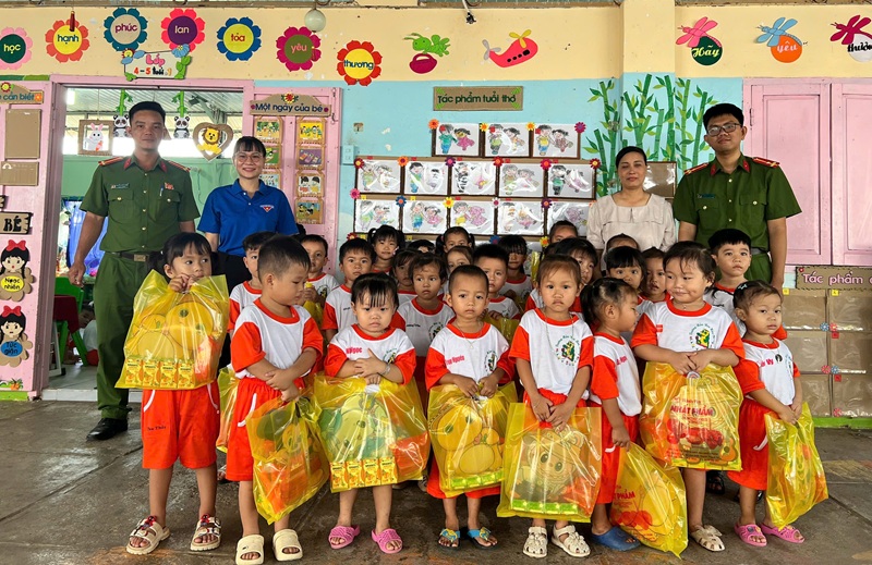 Chi đoàn và Hội Phụ nữ Công an xã Trường Xuân phối hợp cùng Phòng Cảnh sát Quản lý hành chính và các tổ chức thiện nguyện tổ chức chương trình “Trung thu cho em” tại bon N’Jang Bơ. Với 130 suất quà, hàng trăm phần bánh kẹo được trao tận tay học sinh, chương trình còn để lại dấu ấn đặc biệt khi đoàn công tác vượt mưa, đường trơn đến tận nhà thăm và tặng quà cho em nhỏ mồ côi, thể hiện tinh thần nhân ái và trách nhiệm cộng đồng.