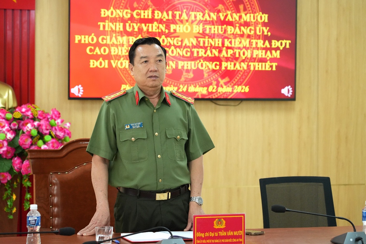 Đại tá Trần Văn Mười - Phó Giám đốc Công an tỉnh ghi nhận và biểu dương những kết quả mà Công an các phường đã đạt được trong thời gian qua, nhất là tinh thần chủ động tham mưu cấp ủy, chính quyền địa phương; bám sát địa bàn, nắm chắc tình hình, không để phát sinh phức tạp về an ninh, trật tự trước, trong và sau các sự kiện chính trị quan trọng của đất nước, trong đó có Đại hội đại biểu toàn quốc lần thứ XIV của Đảng, Tết Nguyên đán Bính Ngọ 2026… Đồng thời, nhấn mạnh, đợt kiểm tra nhằm kịp thời chấn chỉnh, tháo gỡ khó khăn của Công an địa phương, nâng cao hiệu quả thực hiện cao điểm; qua đó, góp phần giữ vững ổn định tình hình an ninh, trật tự trên địa bàn tỉnh.