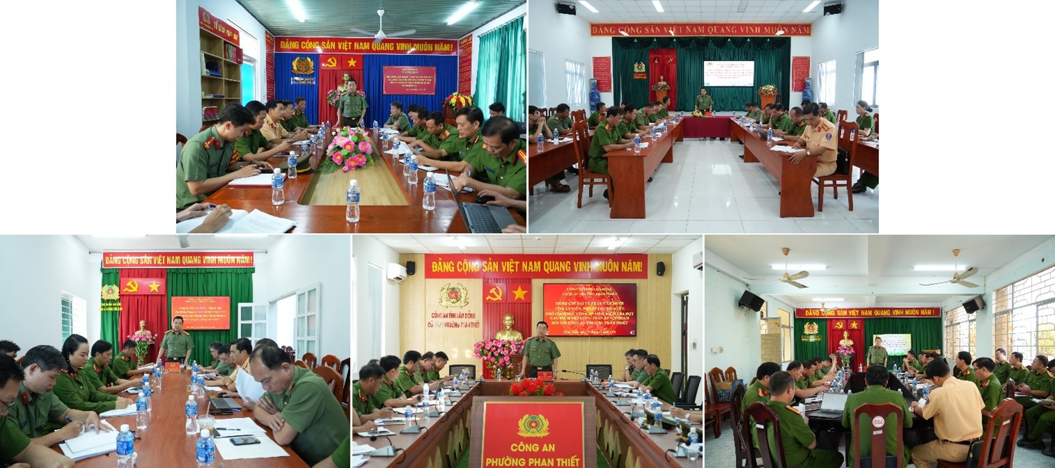 Theo kế hoạch, đoàn công tác kiểm tra tại Công an phường: Phước Hội, Lagi, Tiến Thành, Phan Thiết và Phú Thủy. Tại các buổi làm việc, Đoàn công tác đã được nghe chỉ huy Công an các phường báo cáo tình hình, kết quả triển khai cao điểm trên địa bàn; nêu rõ những mặt đã làm được, tồn tại, khó khăn, vướng mắc trong công tác phòng ngừa, đấu tranh với các loại tội phạm, vi phạm pháp luật, công tác quản lý hành chính về trật tự xã hội, bảo đảm trật tự an toàn giao thông, phòng cháy, chữa cháy và cứu nạn, cứu hộ, cũng như công tác xây dựng lực lượng.