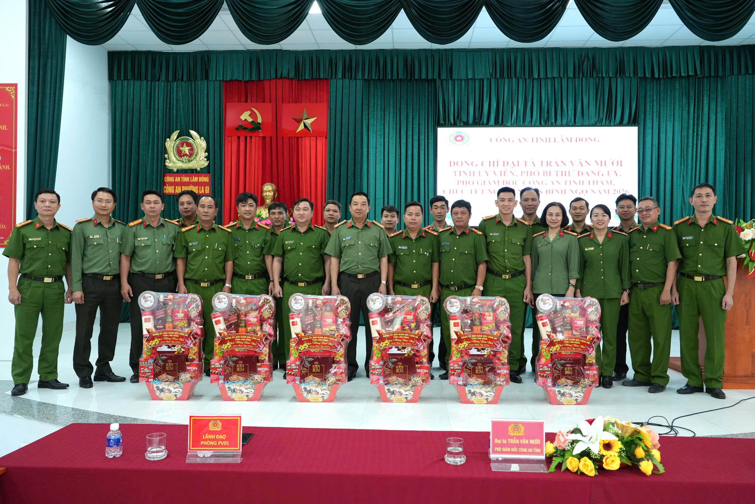 Đại tá Trần Văn Mười tặng quà chúc Tết CBCS Công an phường La Gi