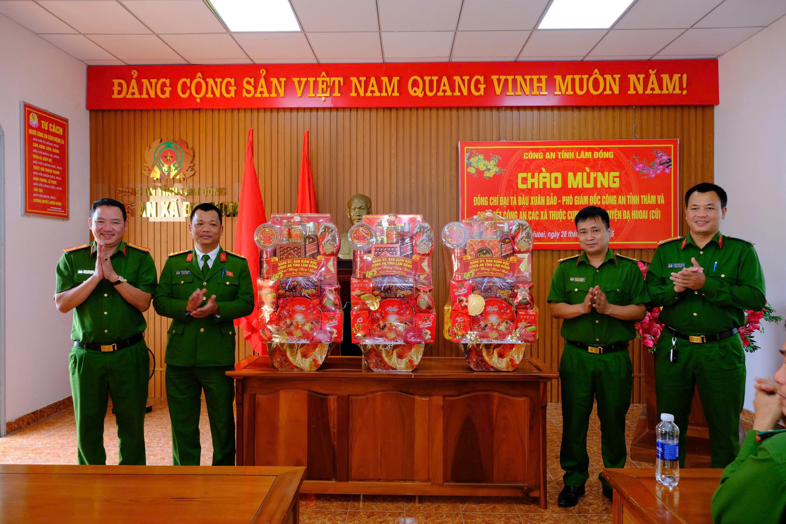 Đại tá Đậu Xuân Bảo, Phó Giám đốc Công an tỉnh thăm chúc Tết Công an các xã tại khu vực phía Nam Lâm Đồng