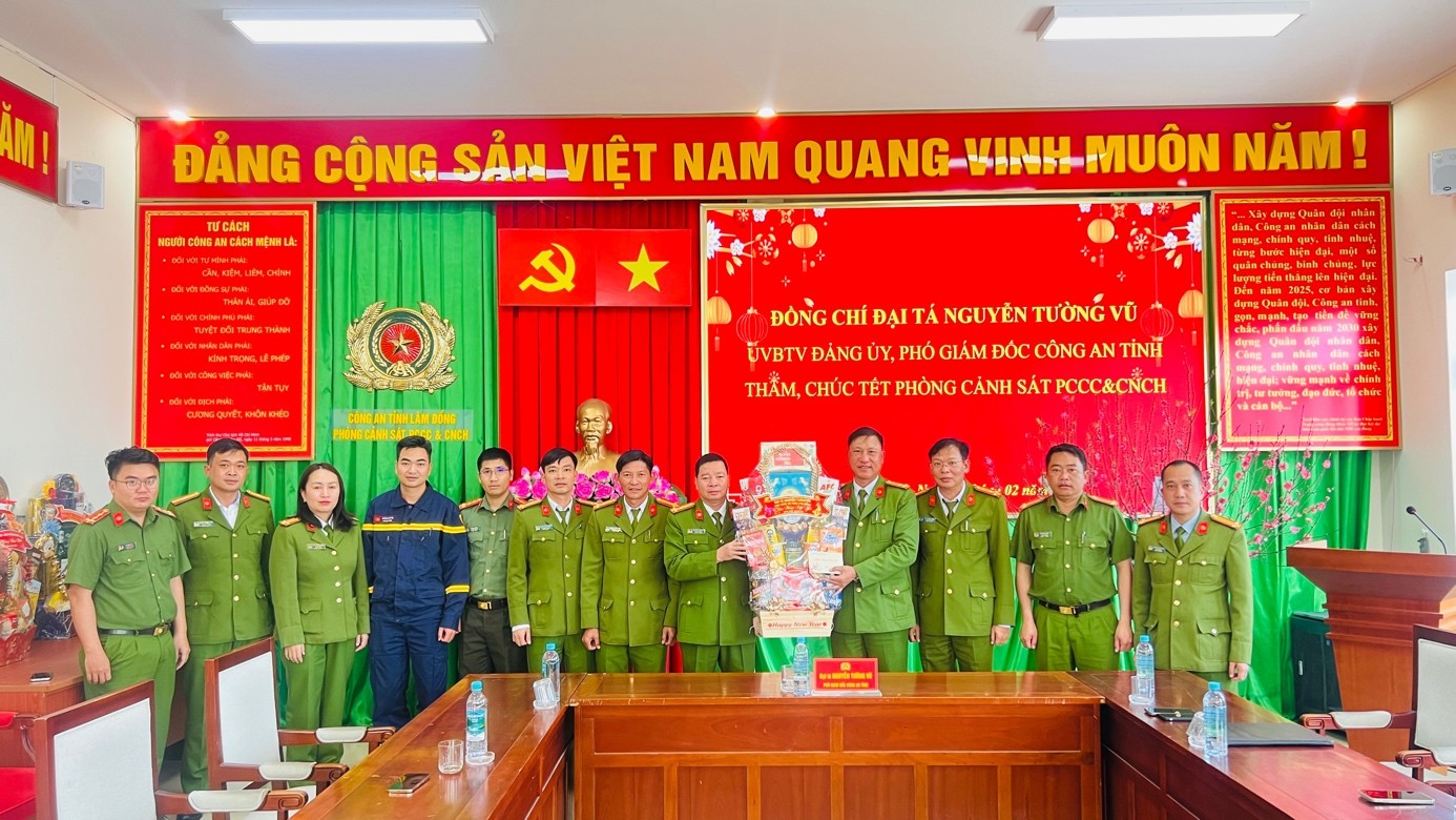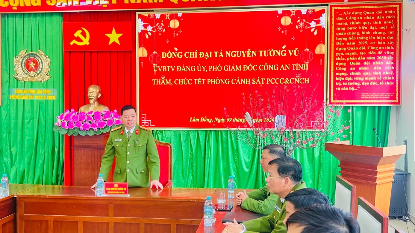 Thay mặt Đảng ủy, Ban Giám đốc Công an tỉnh, Đại tá Nguyễn Tường Vũ gửi lời chúc mừng năm mới sức khỏe, hạnh phúc và thành công đến toàn thể cán bộ, chiến sĩ cùng gia đình. Đồng thời, đồng chí nhấn mạnh và giao nhiệm vụ cho đơn vị: tiếp tục duy trì nghiêm túc chế độ trực quân số, sẵn sàng 24/7 để xử lý kịp thời các tình huống cháy, nổ xảy ra; tăng cường công tác kiểm tra, tuyên truyền, không để xảy ra sự cố bất ngờ, bảo đảm cho Nhân dân vui Xuân, đón Tết an toàn tuyệt đối; phát huy tinh thần “Vì nước quên thân, vì dân phục vụ”, giữ vững hình ảnh đẹp của người chiến sĩ Cảnh sát phòng cháy, chữa cháy trong lòng Nhân dân.