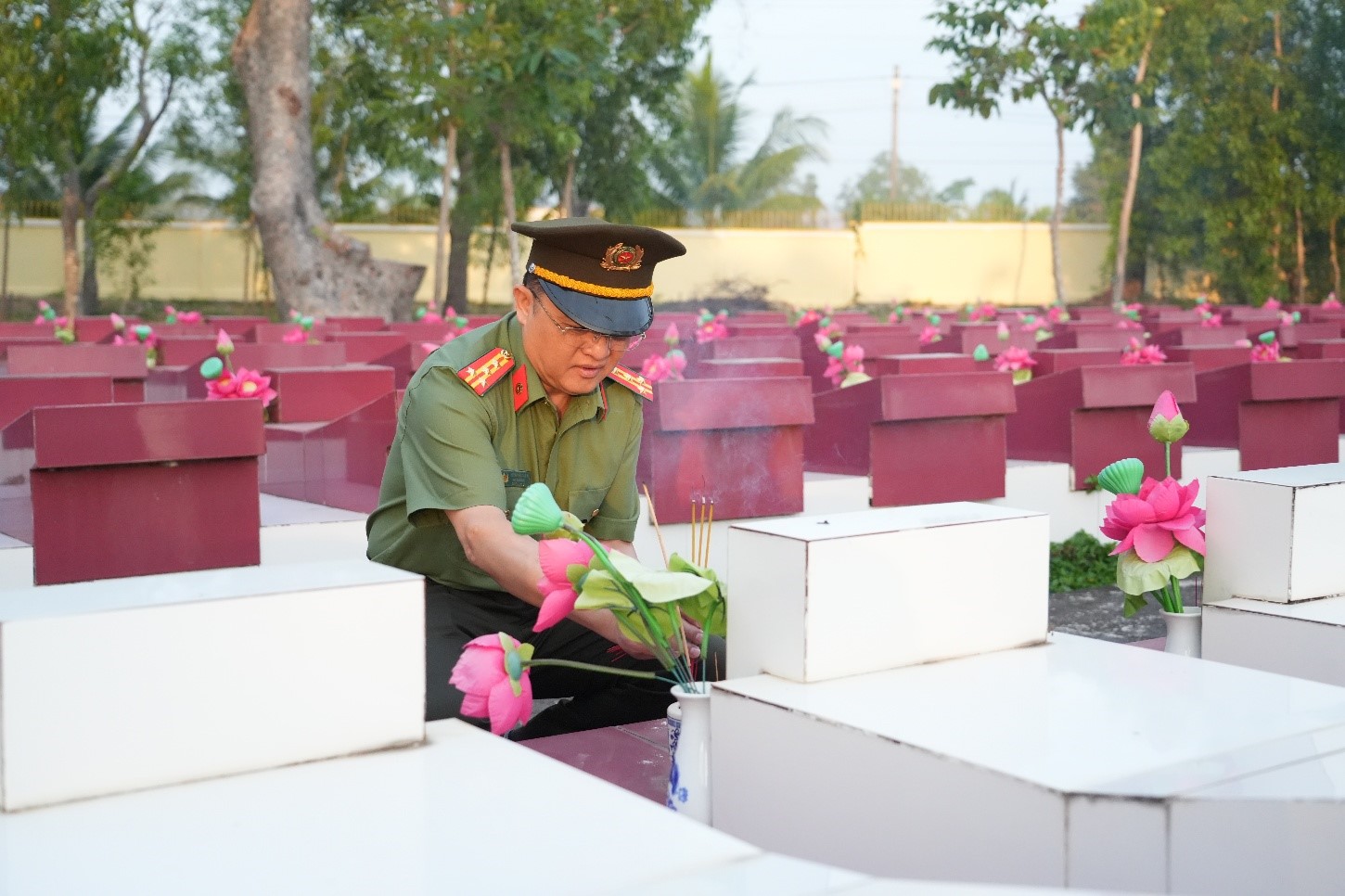 Lãnh đạo Công an tỉnh thắp hương tri ân tại các phần mộ liệt sĩ