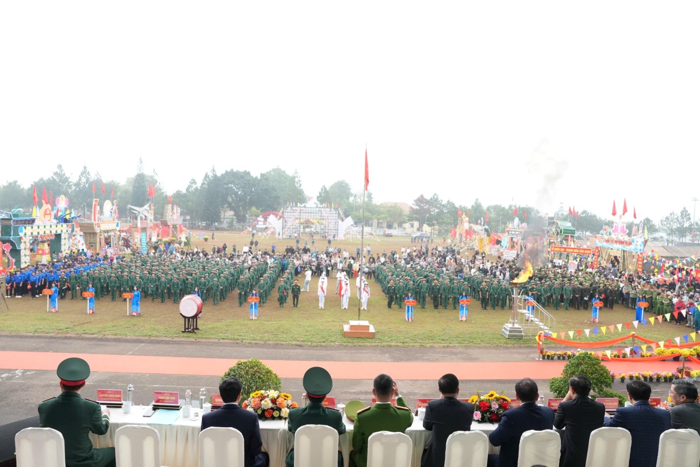 Trong không khí trang nghiêm, rộn ràng cờ hoa, buổi lễ có sự tham dự của Đại tá Đậu Xuân Bảo – Phó Giám đốc Công an tỉnh Lâm Đồng cùng các đồng chí lãnh đạo Tỉnh ủy, UBND tỉnh, Bộ Chỉ huy quân sự tỉnh, Ban Chỉ huy phòng thủ khu vực 3; cấp ủy, chính quyền địa phương, lực lượng vũ trang, các phòng, ban, ngành, đoàn thể và đông đảo thân nhân, Nhân dân trên địa bàn.