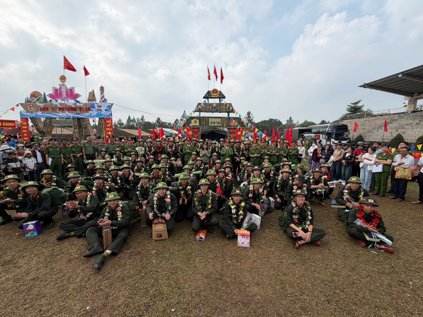 Các tân binh chụp ảnh lưu niệm trước khi lên đường nhập ngũ