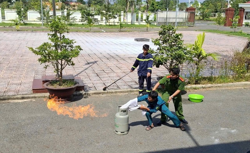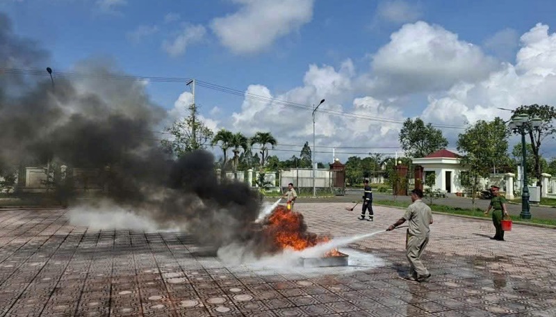 Sau phần khai mạc, cán bộ Đội Chữa cháy khu vực 4 - Phòng Cảnh sát PCCC và CNCH tỉnh Lâm Đồng đã tuyên truyền Luật PCCC và CNCH, hướng dẫn các biện pháp đảm bảo an toàn PCCC và CNCH cho lực lượng ANTT tại cơ sở, dân phòng, dân quân tự vệ… như: sử dụng các thiết bị điện, sử dụng bếp gas, trong quá trình thắp hương thờ cúng và quản lý, sử dụng nguồn lửa, nguồn nhiệt; hướng dẫn bảo quản và sử dụng các phương tiện chữa cháy thông dụng và thực hành sử dụng các phương tiện chữa cháy tại chỗ đám cháy giả định bằng bình gas, khay xăng.