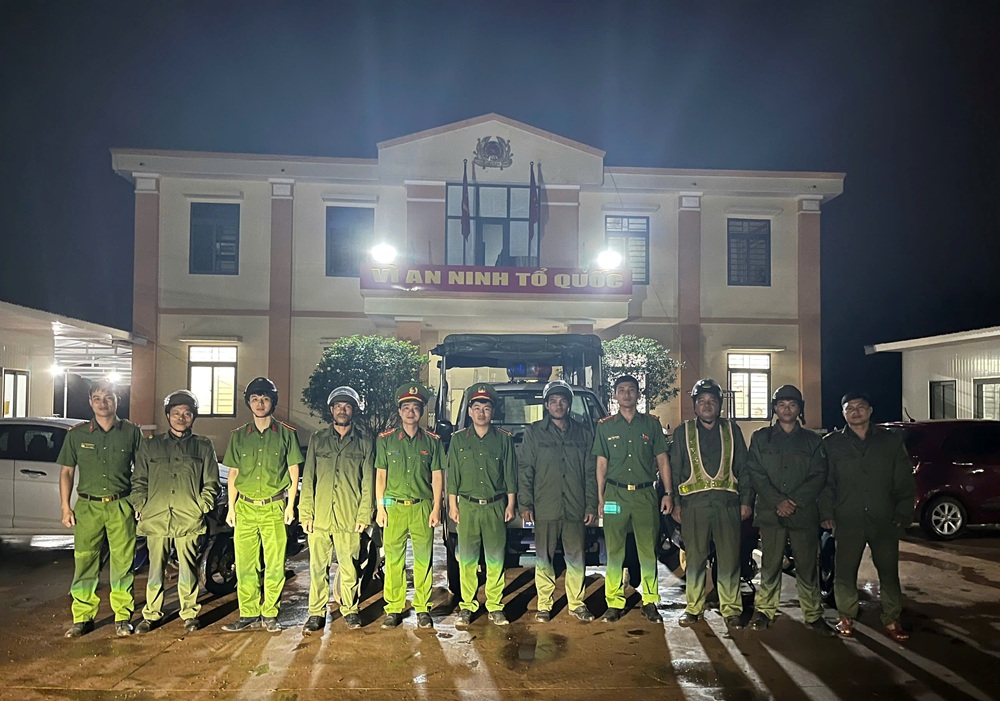 Lực lượng Bảo vệ ANTT cơ sở Phối hợp Công an xã chuẩn bị tuần tra ban đêm.