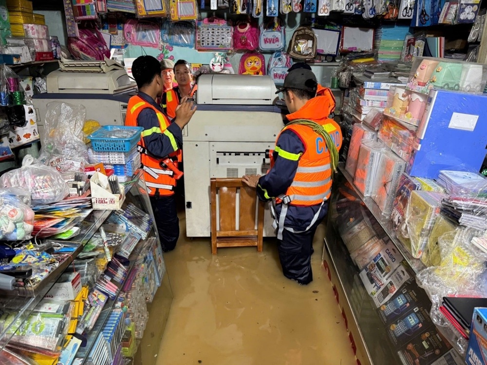 Lực lượng cảnh sát PCCC và CNCH nhanh chóng giúp người dân và tài sản di chuyển đến nơi an toàn
