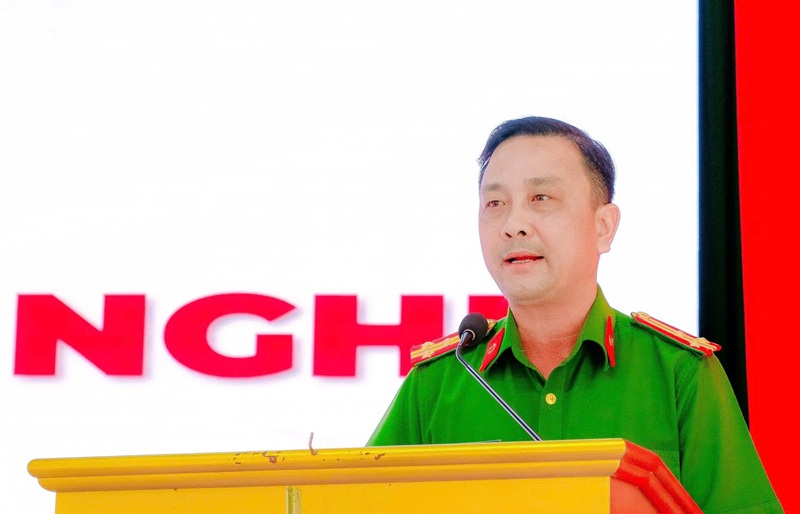 Đồng chí Thượng tá Nguyễn Đăng Khoa – Trưởng phòng Cảnh sát QLHC về TTXH phát biểu khai mạc Hội nghị