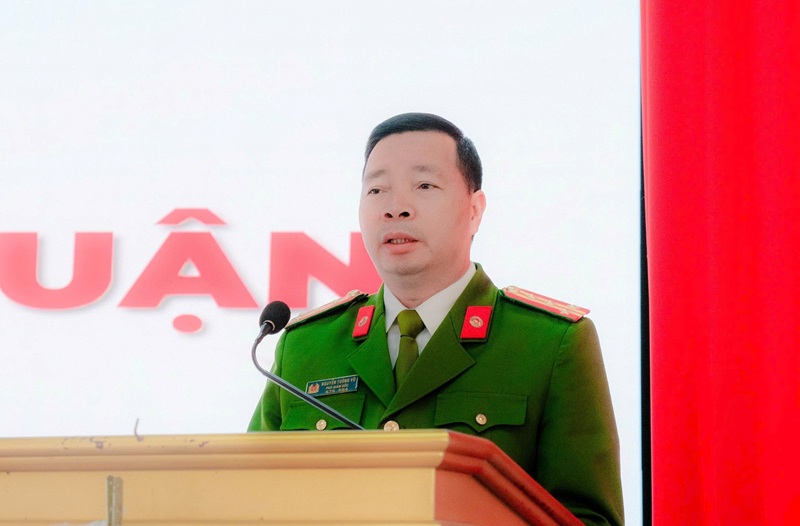 Đồng chí Đại tá Nguyễn Tường Vũ – Phó Giám đốc Công an tỉnh phát biểu chỉ đạo tại Hội nghị