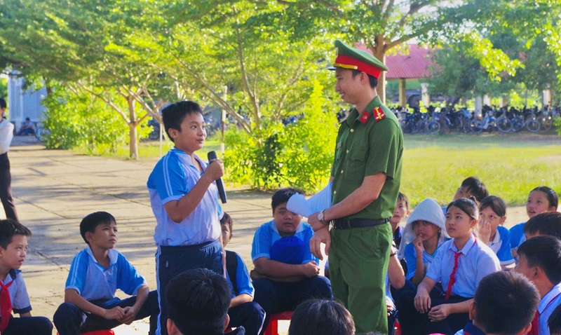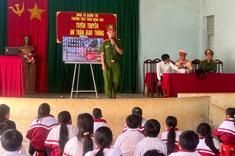 Tại xã Quảng Tín, từ đầu năm học 2025–2026 đến nay, Công an xã đã phối hợp với 4 trường THCS, THPT tổ chức nhiều lượt tuyên truyền pháp luật cho hàng nghìn học sinh. Nội dung tập trung vào an toàn giao thông, phòng chống bạo lực học đường, tác hại của thuốc lá điện tử và ma túy. Thông qua nói chuyện chuyên đề, trao đổi tình huống và chiếu hình ảnh trực quan, học sinh được trang bị kiến thức và kỹ năng cần thiết để chủ động phòng tránh vi phạm, xây dựng tình bạn lành mạnh và nói không với tệ nạn xã hội. Hoạt động góp phần tạo chuyển biến tích cực trong nhận thức, nâng cao tinh thần tự giác chấp hành pháp luật của học sinh.
