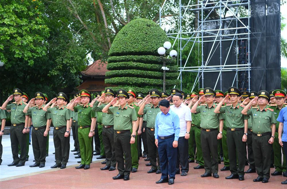 Trước anh linh Chủ tịch Hồ Chí Minh, các Anh hùng liệt sỹ CAND, Bộ trưởng Lương Tam Quang cùng các đại biểu đã thành kính tưởng nhớ, bày tỏ lòng biết ơn vô hạn Chủ tịch Hồ Chí Minh - Người sáng lập, chăm lo xây dựng, giáo dục, rèn luyện lực lượng CAND Việt Nam anh hùng; thành kính tưởng nhớ và tri ân các Anh hùng liệt sỹ nói chung, các Anh hùng liệt sỹ CAND nói riêng đã anh dũng chiến đấu, hy sinh vì độc lập, tự do của Tổ quốc, vì bình yên, hạnh phúc của Nhân dân.