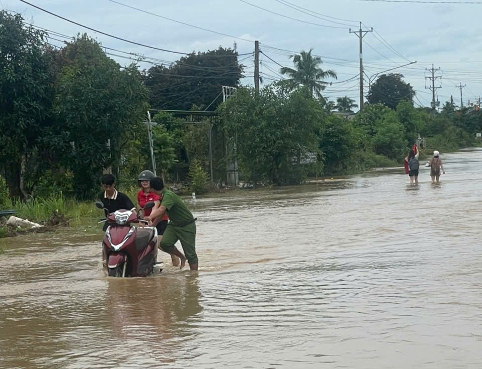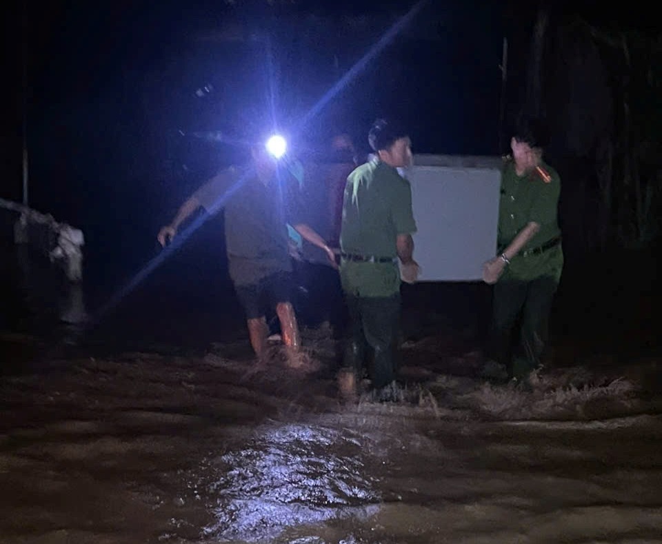 Ngay trong đêm 20/11, khi nước từ thượng nguồn đổ về, toàn xã có 19 khu vực thuộc 9 thôn bị ngập, 7 điểm giao thông bị chia cắt, không thể lưu thông. Công an xã đã triển khai toàn bộ cán bộ, chiến sĩ cùng lực lượng an ninh trật tự, dân quân tự vệ túc trực tại các điểm ngập, hỗ trợ người dân di chuyển, di dời vật nuôi, tài sản, phương tiện, lương thực đến nơi an toàn.