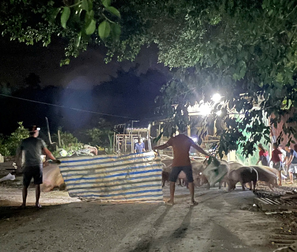 Công an xã hỗ trợ di dời gia súc, đảm bảo tài sản cho người dân