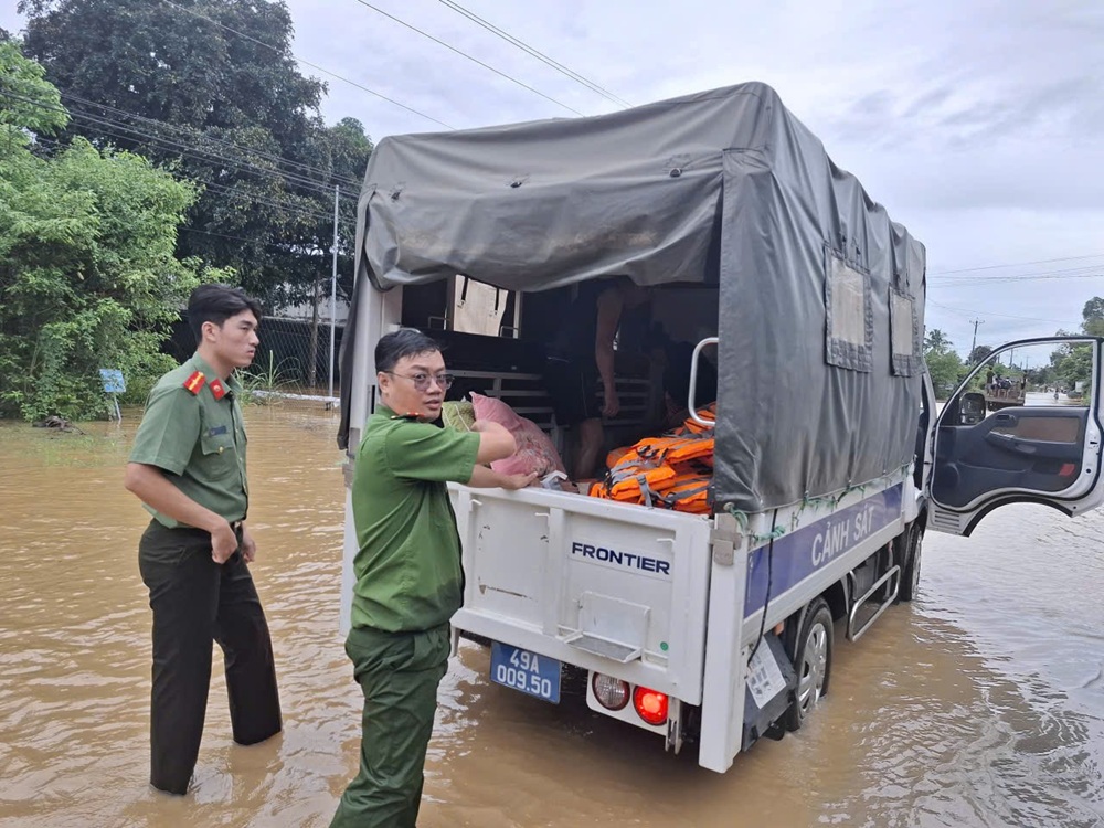 Lực lượng Công an hỗ trợ di dời người dân đến nơi an toàn