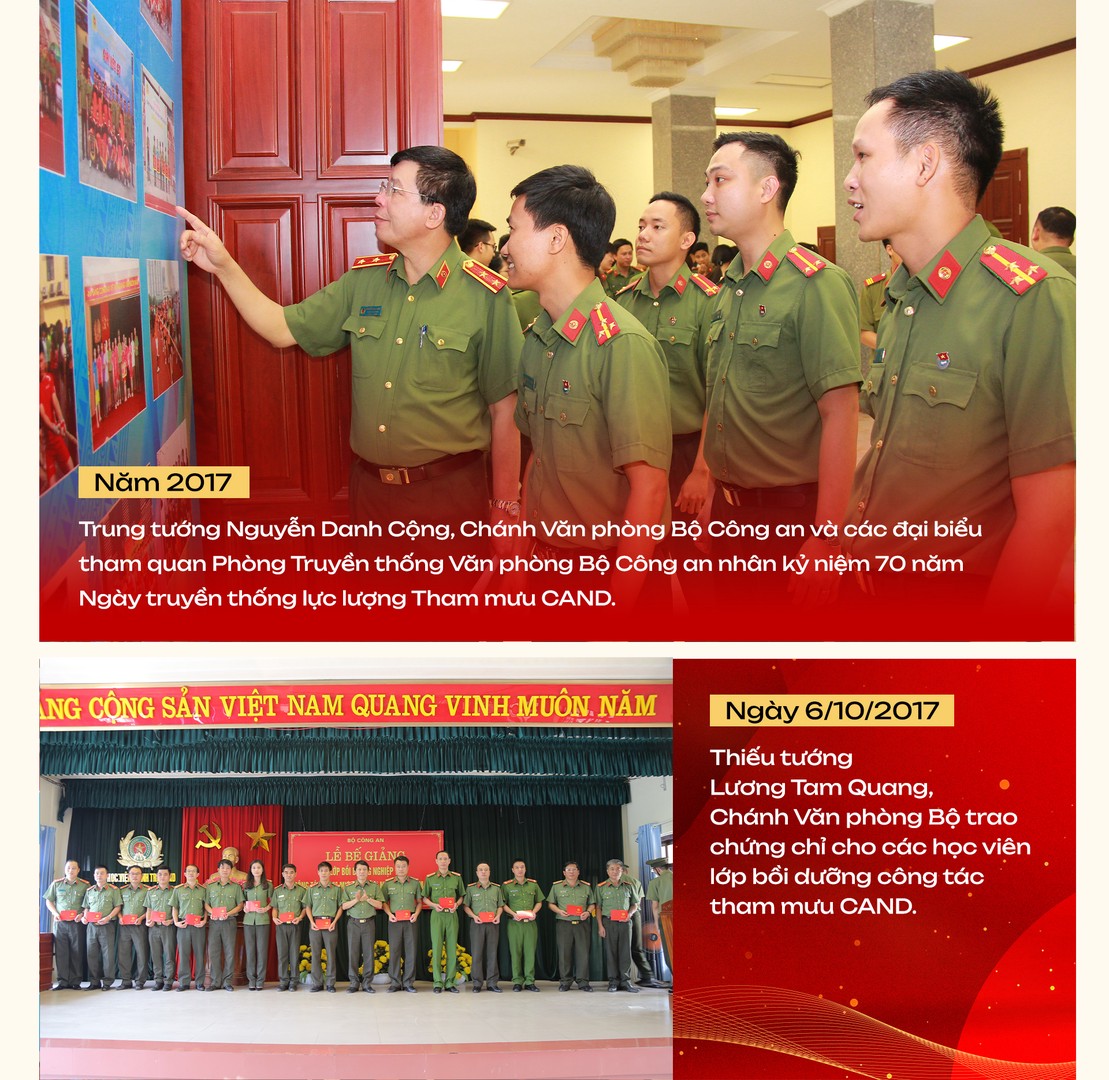 Bên cạnh đó, giai đoạn này chứng kiến sự phát triển, trưởng thành vượt bậc của lực lượng Tham mưu CAND về tổ chức, lực lượng và công tác theo hướng tinh gọn, mạnh, hiệu lực, hiệu quả với nhiều dấu mốc quan trọng: