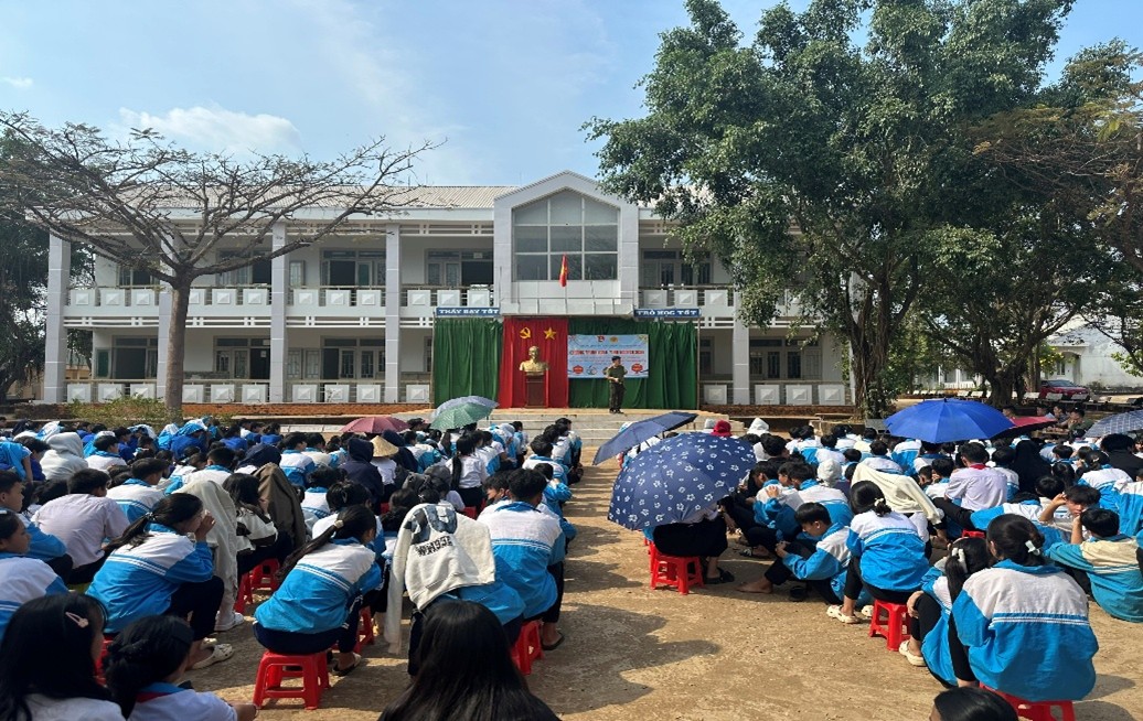 Ban thanh niên Công an tỉnh Lâm Đồng kết hợp với Công an xã Quảng Tân tuyên truyền pháp luật cho các em học sinh