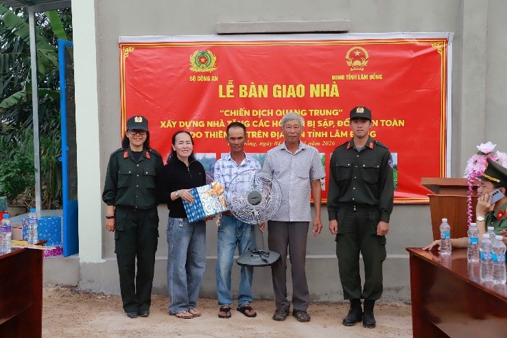 Trước đó, 03 căn nhà tại xã Quảng Lập do phòng Cảnh sát cơ động chủ trì phối hợp cùng lực lượng Công an xã xây dựng cũng đã được khánh thành, bàn giao, đều vượt tiến độ. Trong đó, căn nhà của chị Nguyễn Thị Hương Lan là công trình đầu tiên được hoàn thành trong toàn chiến dịch trên địa bàn tỉnh, bàn giao ngày 21/12/2025. Những mái ấm được trao đi không chỉ là thành quả của sự nỗ lực, mà còn là minh chứng sinh động cho tinh thần “vì Nhân dân phục vụ” của lực lượng Công an nhân dân.