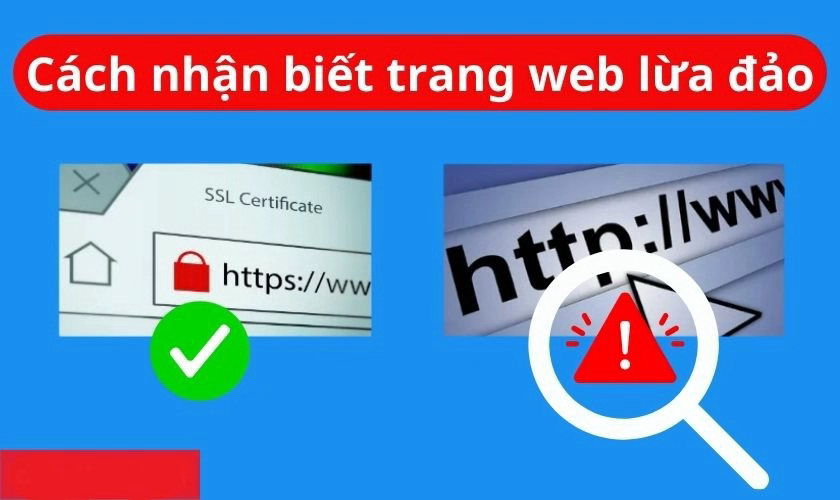 Thiếu chứng chỉ bảo mật (HTTPS): Website uy tín luôn có “https://” kèm biểu tượng ổ khóa, nếu chỉ thấy “http://” và cảnh báo “Không an toàn” thì cần dừng truy cập.