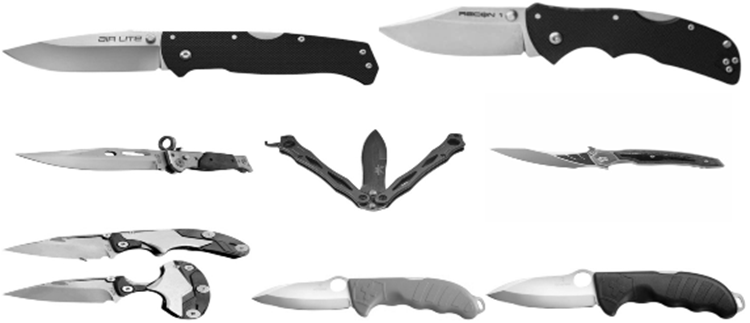 3. Dao gấp, dao bấm: Tay cầm, lưỡi dao; lưỡi có một hoặc nhiều cạnh sắc, nhọn, gấp hoặc bấm lại được, chiều dài từ 7cm trở lên.