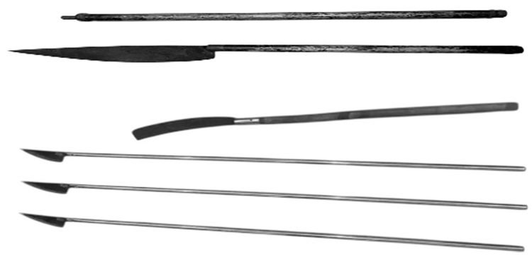 4. Dao tự chế hoặc hoán cải: Tay cầm, lưỡi dao; tay cầm dài từ 30cm trở lên; lưỡi có chiều dài từ 5cm trở lên, sắc nhọn hoặc sắc hoặc nhọn.
