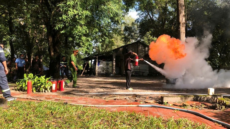 Trong tình huống giả định, một đám cháy phát sinh tại khu vực chánh điện do sự cố chập điện hoặc bất cẩn khi thắp hương, đốt vàng mã. Ngay sau tín hiệu báo cháy, Ban Quản lý Dinh Thầy Thím đã chủ động cắt điện, sử dụng bình chữa cháy tại chỗ để khống chế đám cháy, đồng thời phối hợp với Công an xã và lực lượng PCCC chuyên nghiệp triển khai công tác cứu nạn, cứu hộ, hướng dẫn du khách thoát hiểm an toàn.