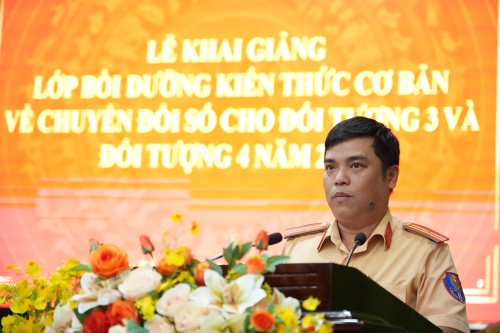 Tại buổi lễ, đồng chí Thiếu tá Phạm Tiến Dũng đại diện cho học viên các lớp bồi dưỡng, bày tỏ lòng biết ơn sâu sắc tới Đảng ủy, lãnh đạo Công an tỉnh đã quan tâm, tạo điều kiện cho cán bộ, chiến sĩ được học tập, trang bị kiến thức về chuyển đổi số. Đồng chí khẳng định trong suốt thời gian học tập, toàn thể học viên sẽ nêu cao tinh thần trách nhiệm, chấp hành nghiêm nội quy, quy chế đào tạo, tích cực học tập, rèn luyện và hỗ trợ lẫn nhau để đạt kết quả tốt nhất, vận dụng hiệu quả kiến thức vào thực tiễn công tác.